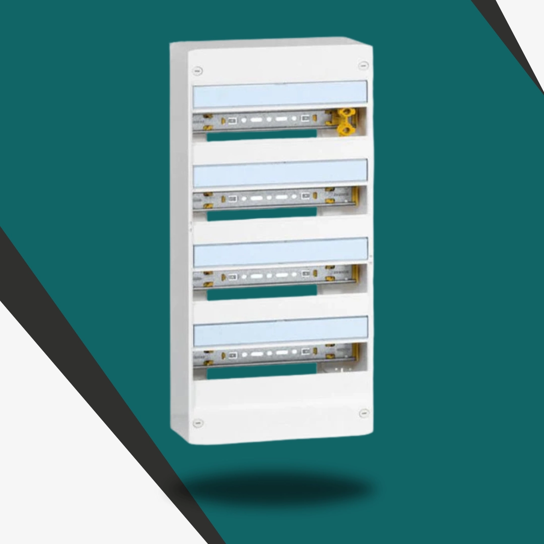 Tableau électrique 4 rangées pouvant accueillir jusqu’à 52 modules (13 par rangée). Conçu pour organiser et protéger les circuits électriques d’un logement ou local, il permet d’installer facilement disjoncteurs, interrupteurs différentiels et autres appareillages. Installation murale, finition blanche neutre pour un rendu soigné.