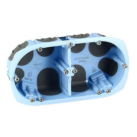 Boîte d’encastrement 2 postes, profondeur 40 mm, pour cloisons creuses. Pose simple, horizontal ou vertical. Compatible avec la plupart des prises et interrupteurs, étanche à l’air pour un intérieur plus confortable.